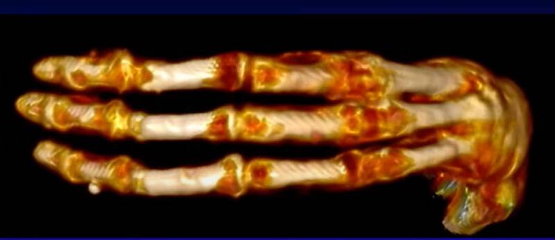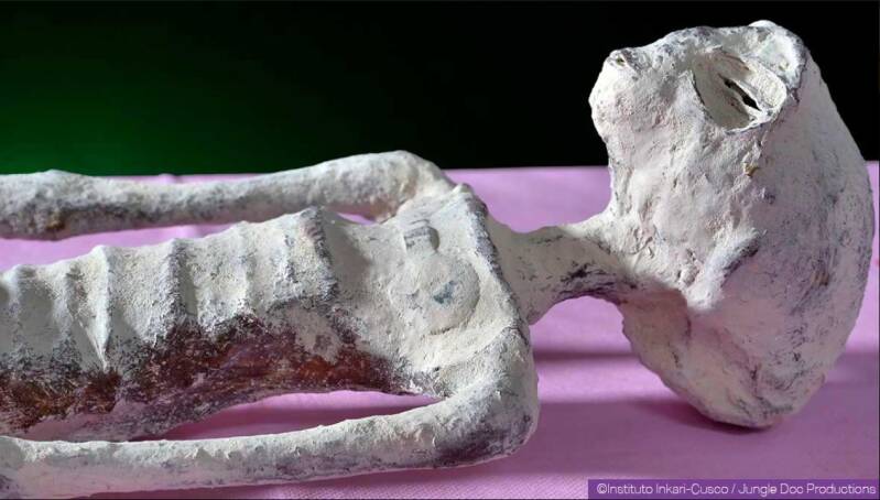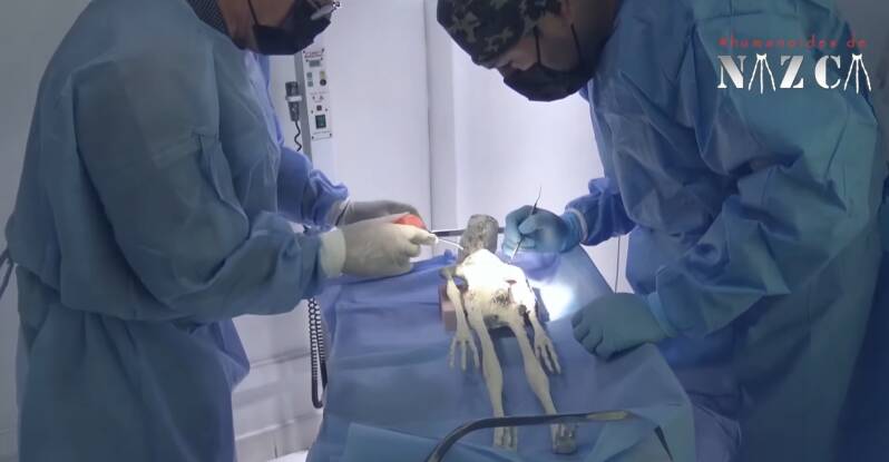 Below you can see the metal implant in the upper chest of this Nazca Alien . . .