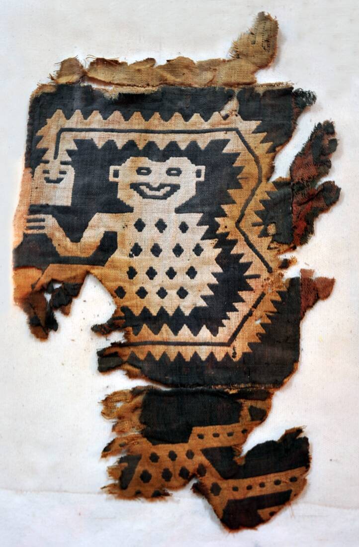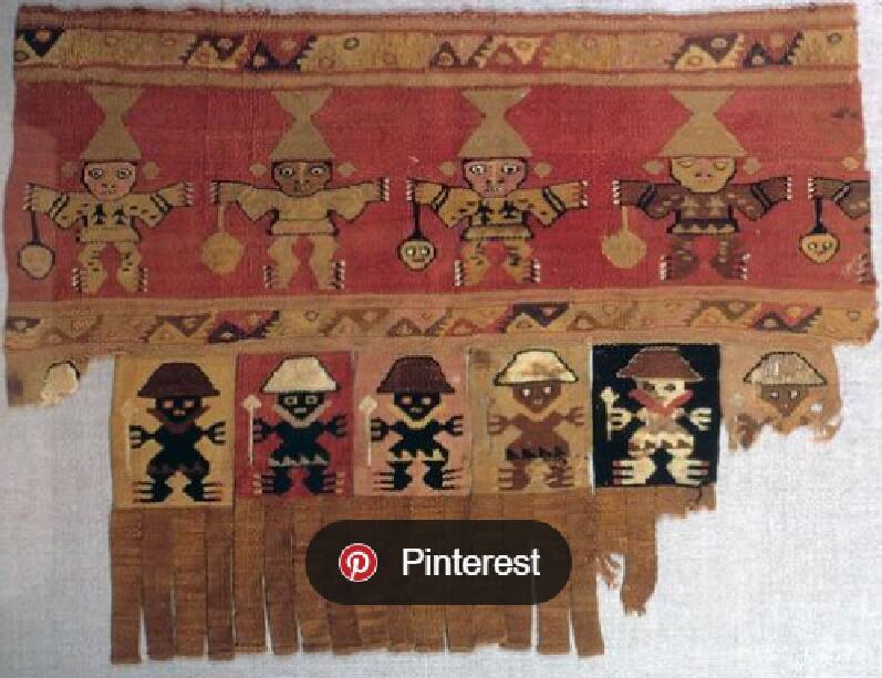 The first textiles were very abstract and the pyramid at Paramonga or Cahuachi had not yet been built. 700 BC to 100 AD. The early Paracas Culture.