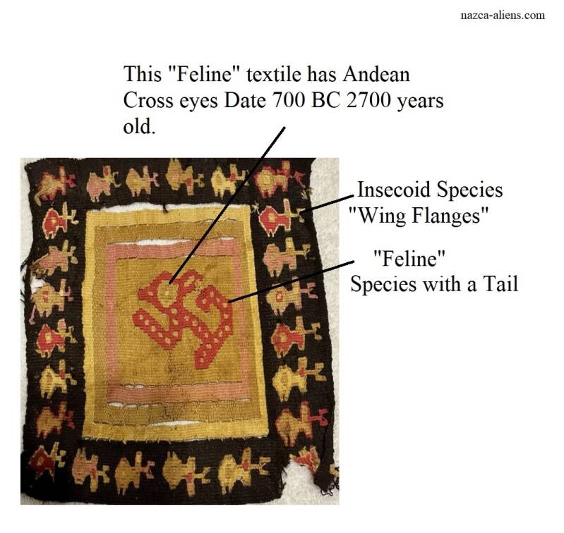 3. The "Feline" Nazca Alien was represented by the "Cat Like" symbol and appears as a "Cat Like" figure in over 30 textiles from that time period.