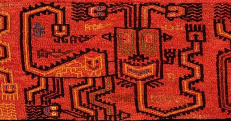 The first textiles were very abstract and the pyramid at Cahuachi had not yet been built. 350 BC to 100 AD.