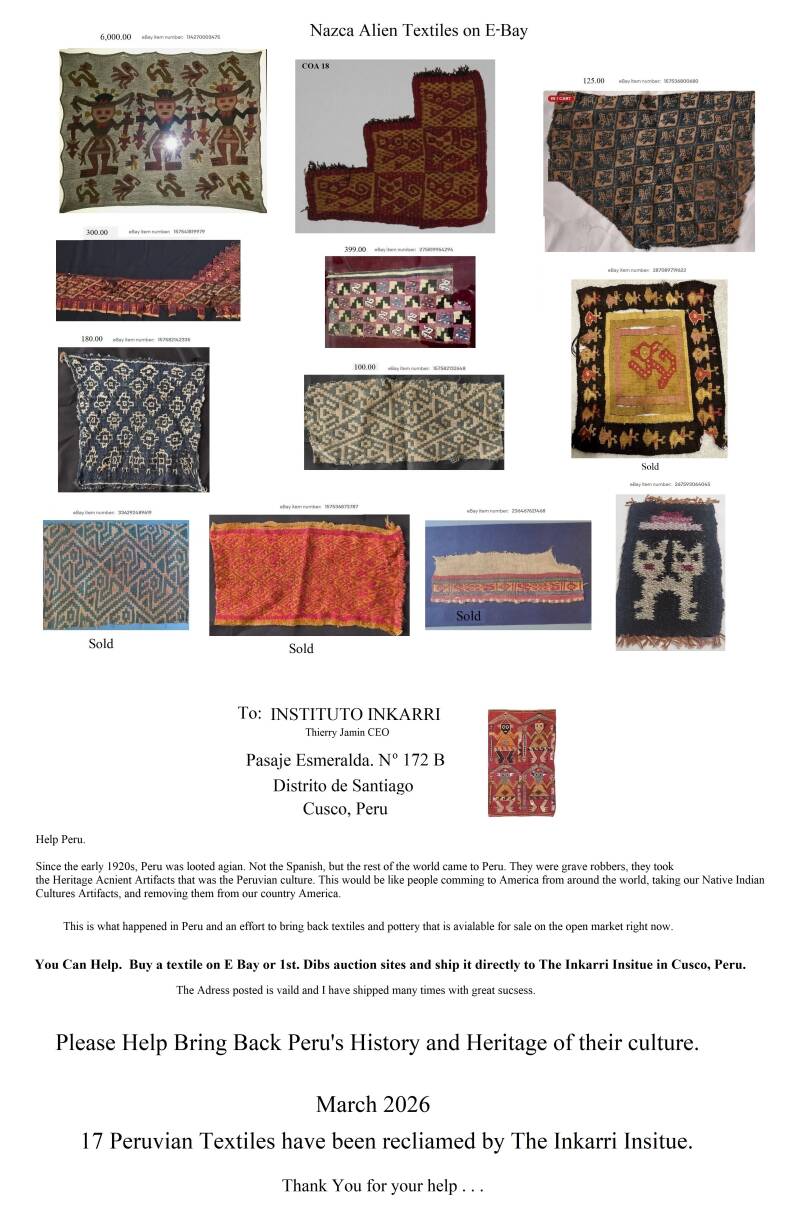 This textile reclaiming program has 17 textiles that have been donated to The Inkarri Institute in Cusco, Peru.