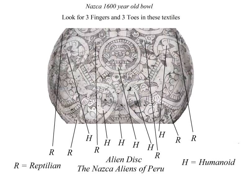 You will notice the "little guys", three fingers and three toes. They are the Reptilian Aliens and the Humanoid Aliens are 4 to 5 fee tall. If you see 4 toes it is one of the "Large Skull People" that Ruled with the Nazca Aliens.