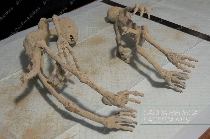 Two bodies of a New Species with 3 fingers and 3 toes with a "Tail"