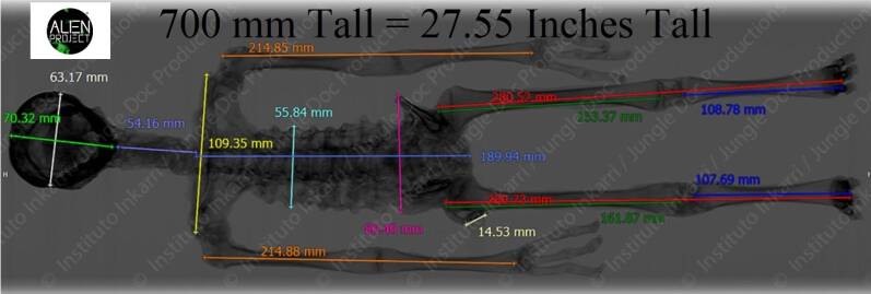 The Reptilian Alien X Ray Height Chart in mm converted to inches tall.