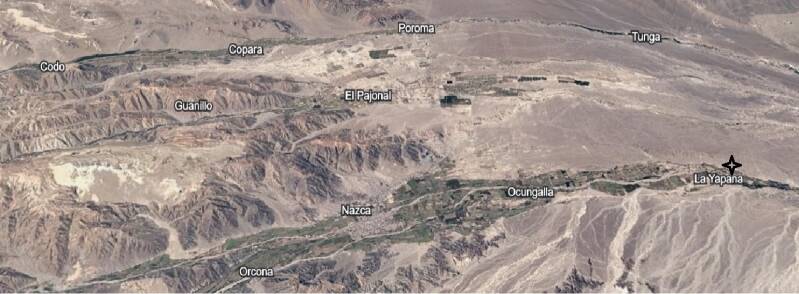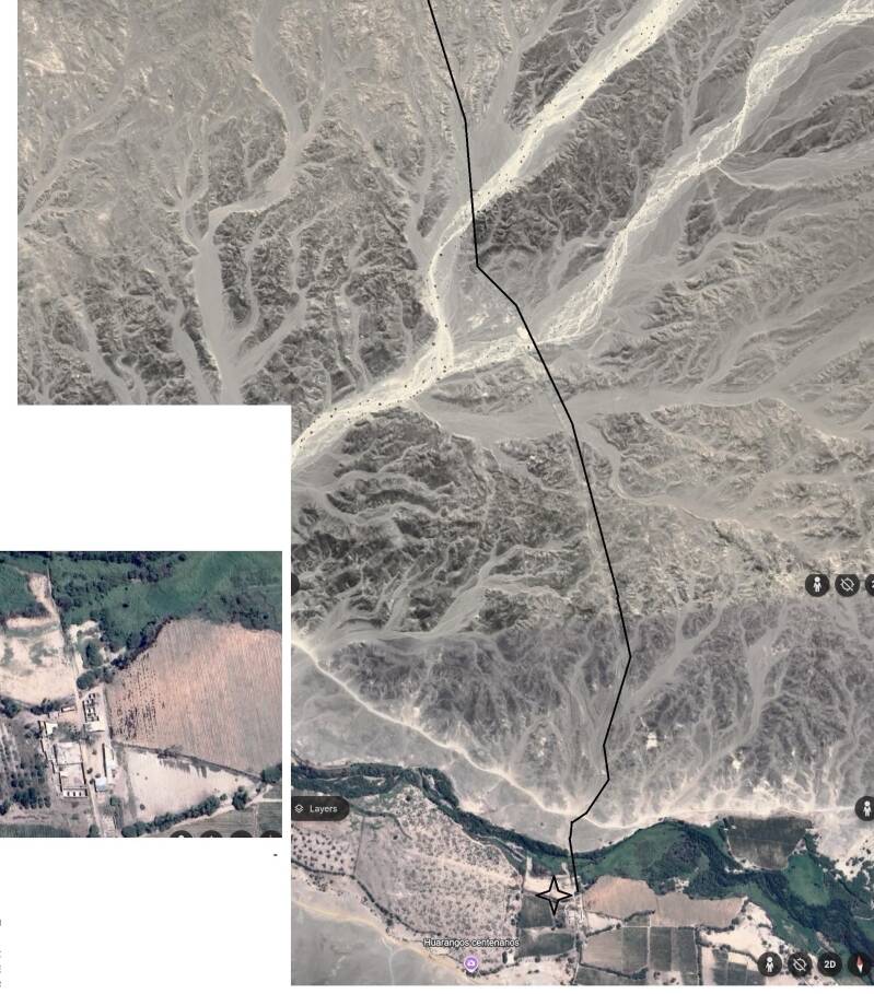 The "Nazca Line" you follow to cross the river; can still be seen today. This was the only way to cross the river at that time, to reach The Nazca Temple Cahuachi.
